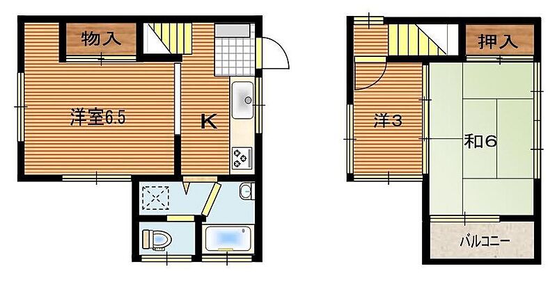 間取詳細 | 洋室 6.5帖(1階) 和室 6畳(2階) 洋室 3帖(2階) | ||